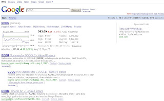 And a stock search for GOOG (it is down a bit, and likely a good buy):